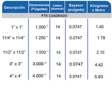 PTR GALVANIZADO CUADRADO
