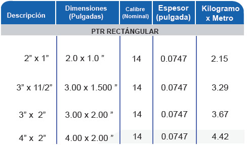 PTR GALVANIZADO RECTANGULAR