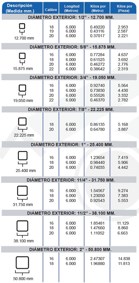TUBERÍA INDUSTRIAL CUADRADA